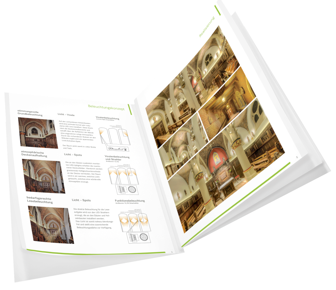 In unserem Fallstudien PDF erhalten Sie einen ausführlichen Einblick in die folgenden Bereiche der sakralen Beleuchtung: